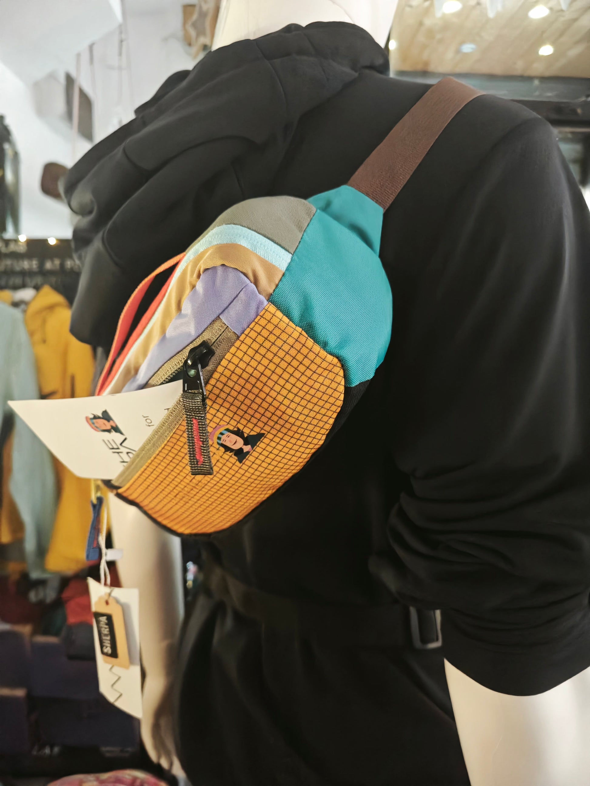 Marsupio tracolla tessuto leggero e resistente in nylon colorato unisex. Leggera, con più scomparti, ideale per viaggi, escursioni.